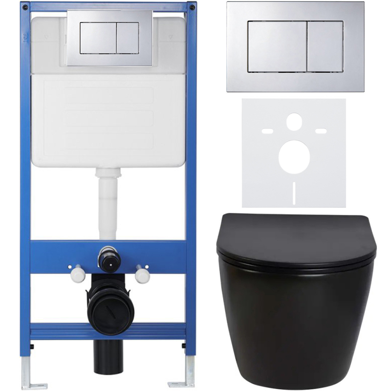 CERANO - Kompletný podomietkový WC set Verde - čierna lesklá - WC tlačidlo Classic, chróm - predstenová inštalácia - 49x36 cm
