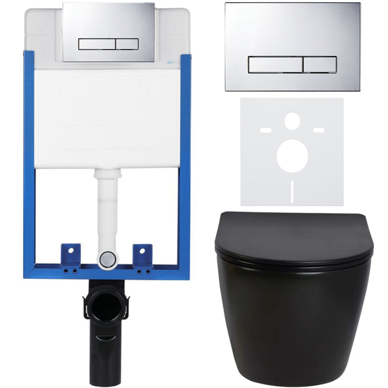 CERANO - Kompletný podomietkový WC set Lite/Verde - čierna lesklá - WC tlačidlo Slim, chróm - na zamurovanie - 49x36 cm