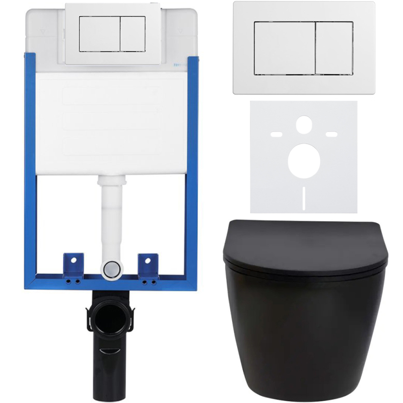 CERANO - Kompletný podomietkový WC set Verde - čierna matná - WC tlačidlo Classic, biele - na zamurovanie - 49x36 cm