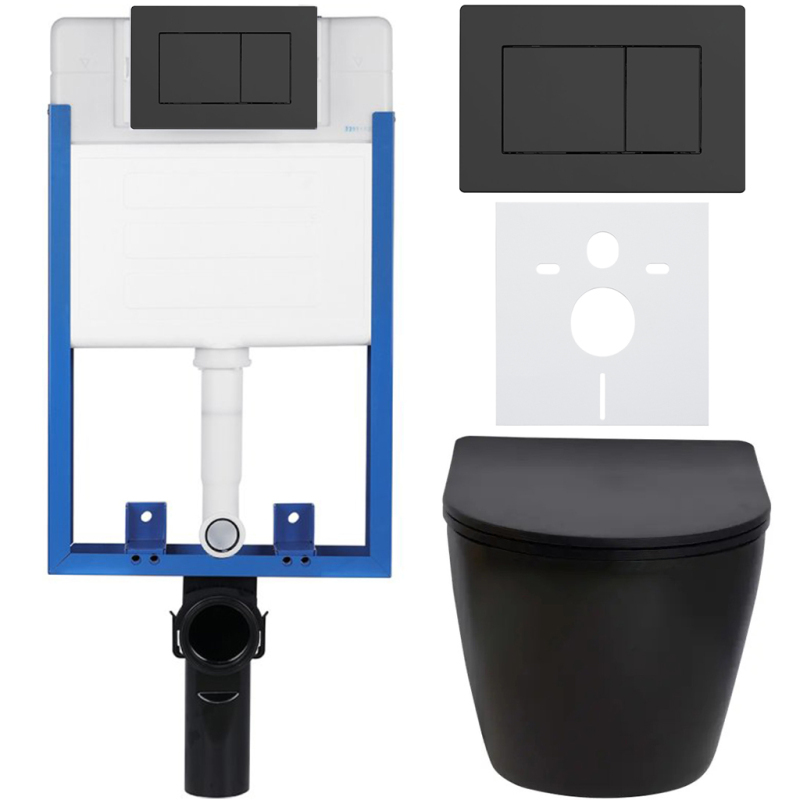 CERANO - Kompletný podomietkový WC set Lite/Verde - čierna matná - WC tlačidlo Classic, čierne matné - na zamurovanie - 49x36 cm