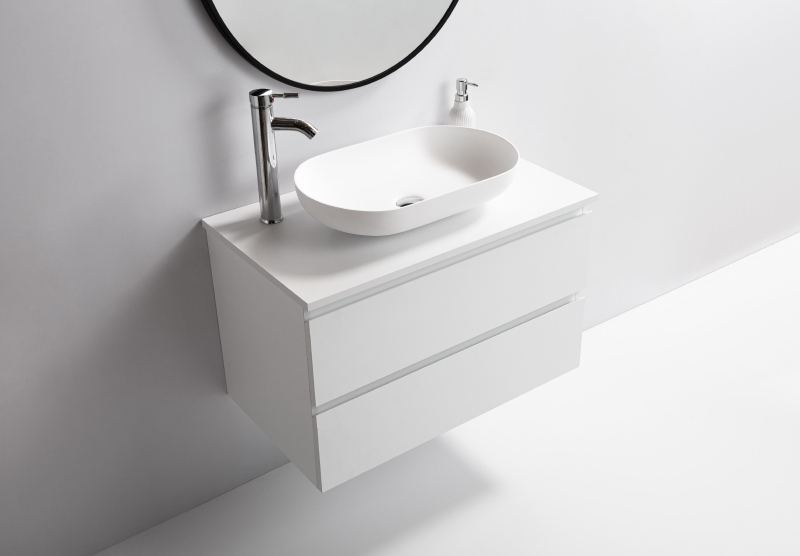 CERANO - Kúpeľňová doska z liateho mramoru Elanys - 12 mm - biela matná - 80 cm