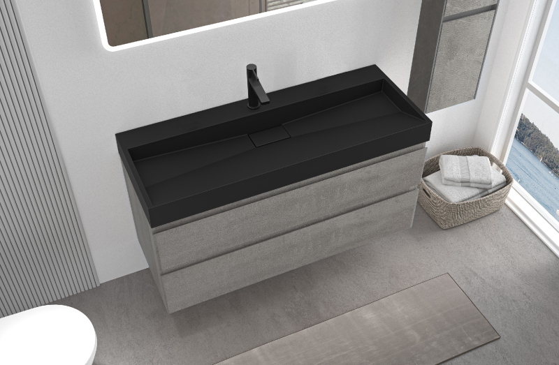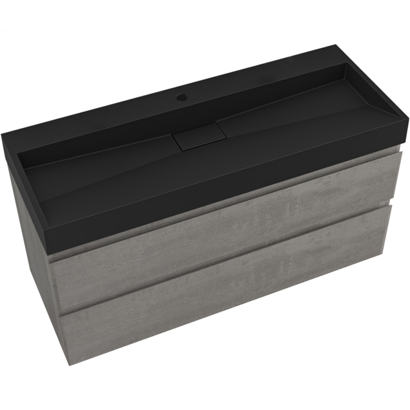 CERANO - Kúpeľňová skrinka Carole - betónovo šedá + umývadlo z lit. mramoru Vita - otvor - čierna matná - 100x58x46 cm