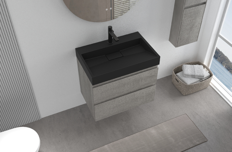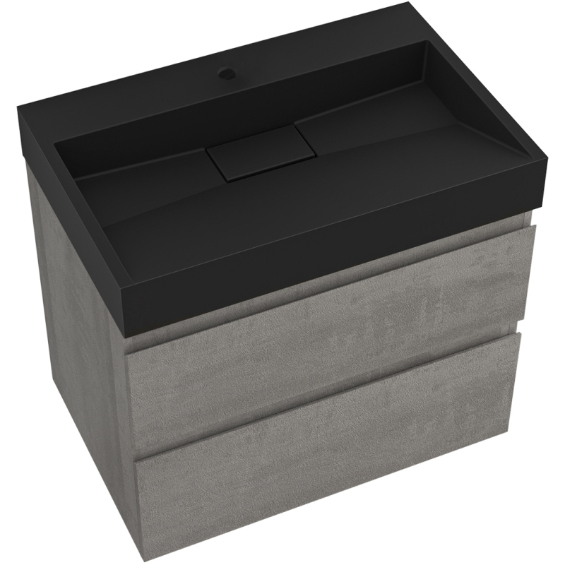 CERANO - Kúpeľňová skrinka Carole - betónovo šedá + umývadlo z lit. mramoru Vita - otvor - čierna matná - 70x58x46 cm