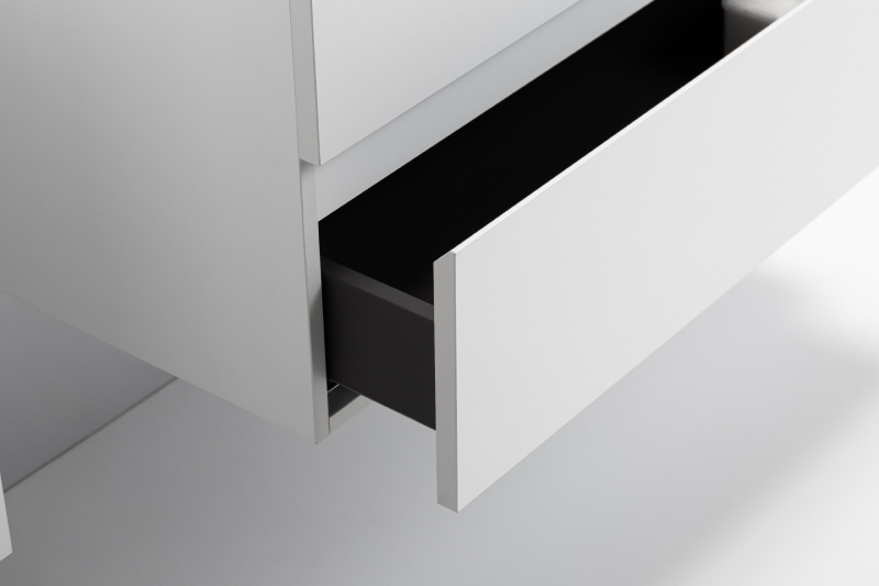 Vďaka integrovanému soft-close mechanizmu sa dvierka a zásuvky zatvárajú plynulo a ticho – hydraulický doraz tlmí náraz, zabraňuje búchaniu a znižuje opotrebenie, takže nábytok vydrží dlhšie a používanie je pohodlné.