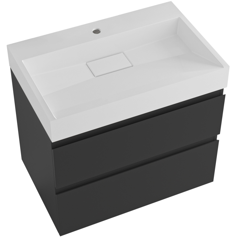 CERANO - Kúpeľňová skrinka Carole - čierna matná + umývadlo z lit. mramoru Vita - otvor - biela matná - 70x58x46 cm