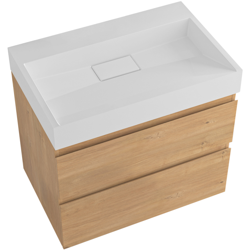 CERANO - Kúpeľňová skrinka Carole - dub medový + umývadlo z lit. mramoru Vita - biela lesklá - 70x58x46 cm