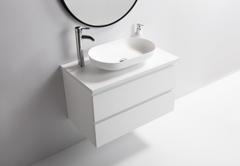 expedícia do 8 dníCERANO - Umývadlo z liateho mramoru Lyra - na dosku - biela matná - 54x34 cm