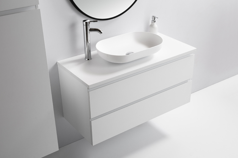 expedícia do 8 dníCERANO - Umývadlo z liateho mramoru Lyra - na dosku - biela matná - 54x34 cm
