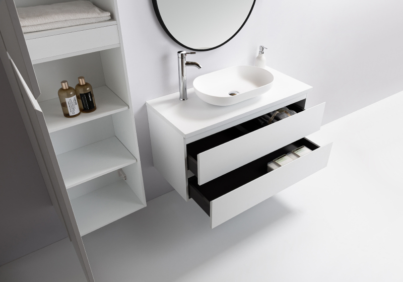 Naše kúpeľňové skrinky prichádzajú už v zmontovanom stave, čo vám ušetrí čas aj námahu pri ich inštalácii. Sú vyrobené z kvalitných materiálov a ponúkajú dostatok úložného priestoru pre všetky vaše potreby.