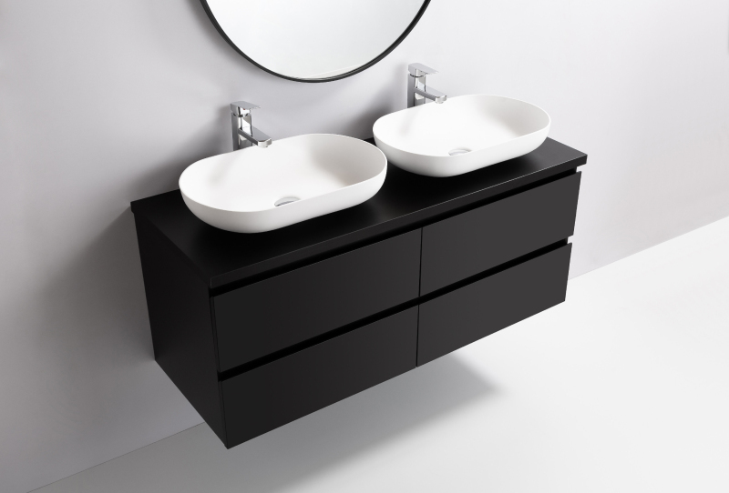 CERANO - Kúpeľňová skrinka Carole s doskou pod umývadlo - 36 mm - čierna matná - 121x51, 6x46, 5 cm