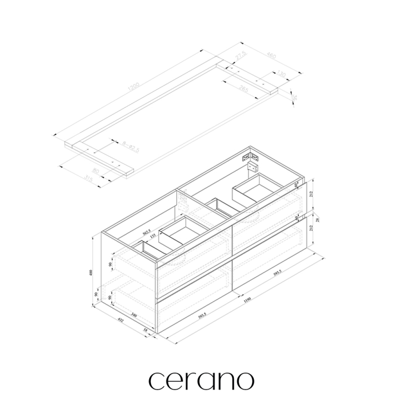 V rámci tejto série ponúkame širokú škálu rozmerov , aby sme uspokojili rôzne potreby našich zákazníkov. Všetky kúpeľňové skrinky značky Cerano sú navrhnuté tak, aby boli plne kompatibilné s doskami a umývadlami Cerano v rovnakých rozmeroch , čo zaisťuje bezproblémovú inštaláciu a dokonalé zladenie.