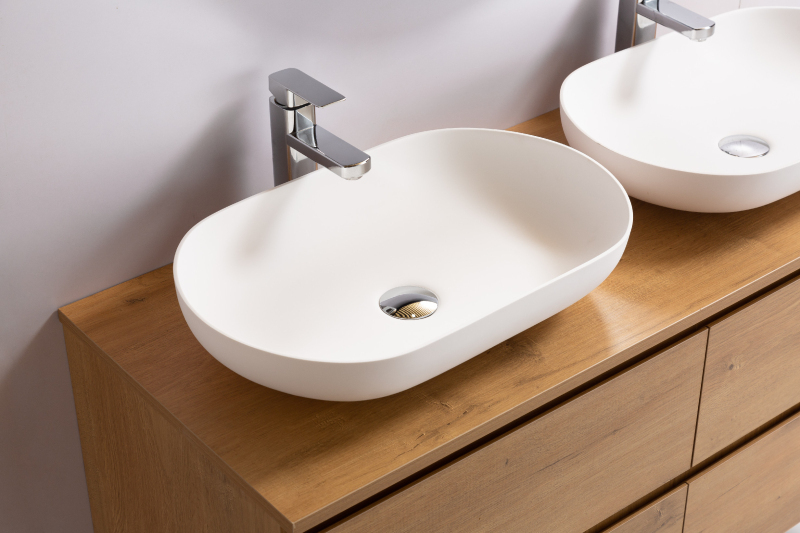 expedícia do 10 dníCERANO - Umývadlo z liateho mramoru Lyra - na dosku - biela matná - 54x34 cm