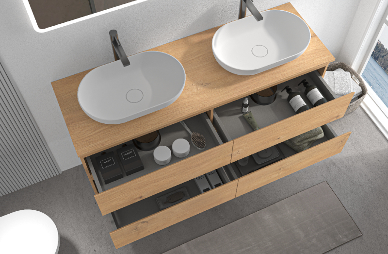 Vďaka úložnému priestoru je tento kúpeľňový nábytok veľmi praktickým pomocníkom do každej kúpeľne. Kombinácia inovatívneho a spoľahlivého riešenia, na ktorom si naša značka zakladá, dala vzniknúť kvalitnému a zároveň veľmi modernému kúpeľňovému nábytku.