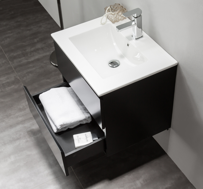 CERANO - Kúpeľňová skrinka pod umývadlo Carole - čierna matná - 69x48x45 cm