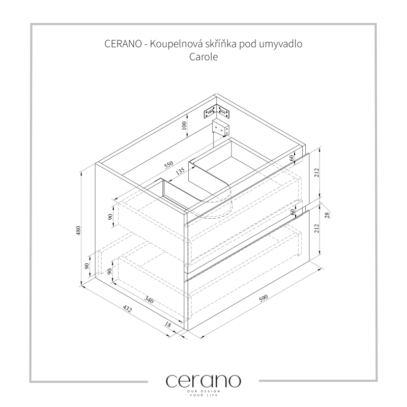 expedícia do 10 dníCERANO - Kúpeľňová skrinka pod umývadlo Carole - biela matná - 59x48x45 cm