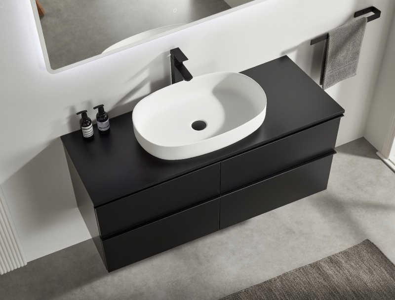 CERANO - Doska pod umývadlo Navira Slim - čierna matná - 121x46,5x1,8 cm