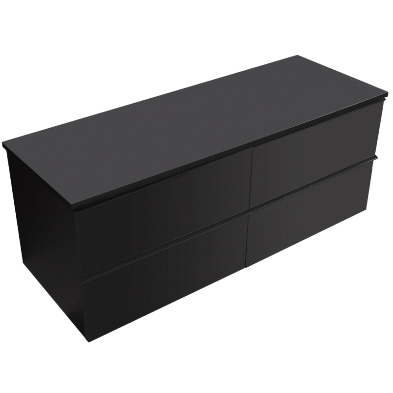 CERANO - Kúpeľňová skrinka pod umývadlo s úchytkou/doskou pod umývadlo Velora - 18 mm - čierna matná, čierna úchytka - 158x49,8x45,2 cm