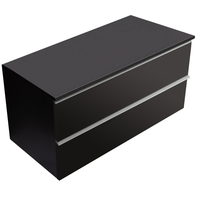 CERANO - Kúpeľňová skrinka pod umývadlo s úchytkou/doskou pod umývadlo Velora - 18 mm - čierna matná, chrómová úchytka - 99x49,8x46 cm
