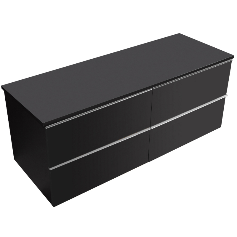 CERANO - Kúpeľňová skrinka pod umývadlo s úchytkou/doskou pod umývadlo Velora - 18 mm - čierna matná, chrómová úchytka - 138x49,8x45,2 cm