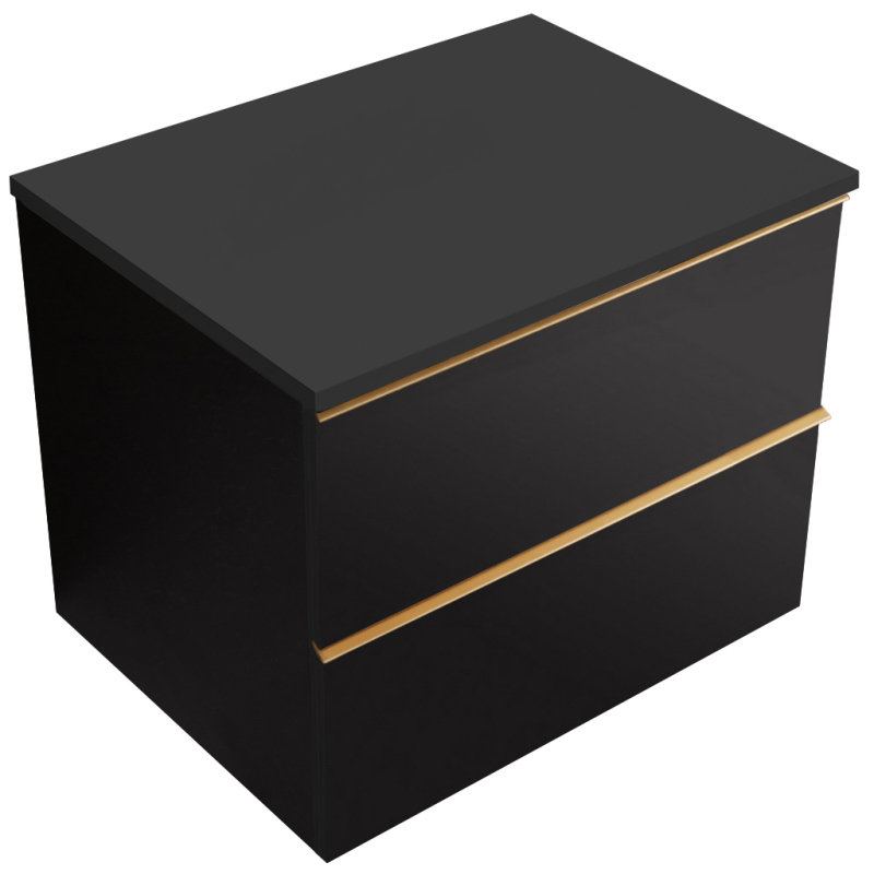 CERANO - Kúpeľňová skrinka pod umývadlo s úchytkou/doskou pod umývadlo Velora - 18 mm - čierna matná, zlatá úchytka - 59x49,8x46 cm