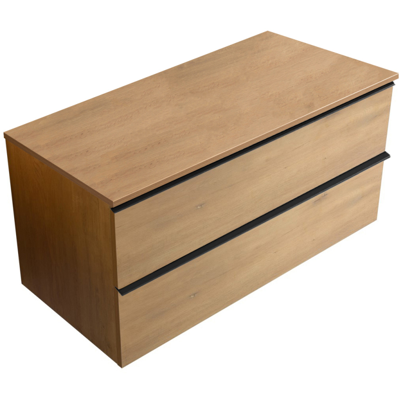 CERANO - Kúpeľňová skrinka pod umývadlo s úchytkou/doskou pod umývadlo Velora - 18 mm - dub medový, čierna úchytka - 99x49,8x46 cm
