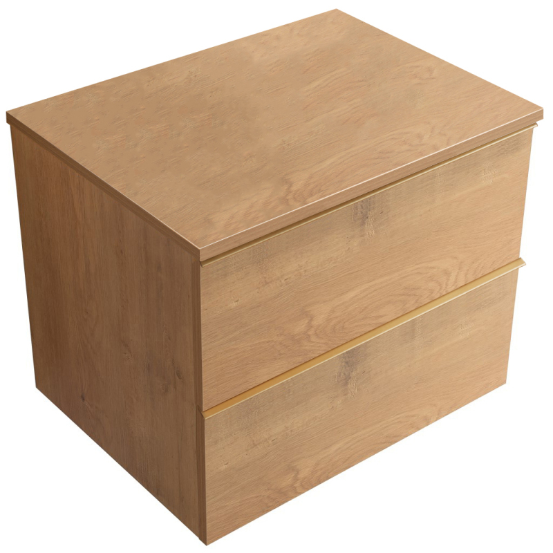 CERANO - Kúpeľňová skrinka pod umývadlo s úchytkou/doskou pod umývadlo Velora - 18 mm - dub medový, zlatá úchytka - 59x49,8x46 cm