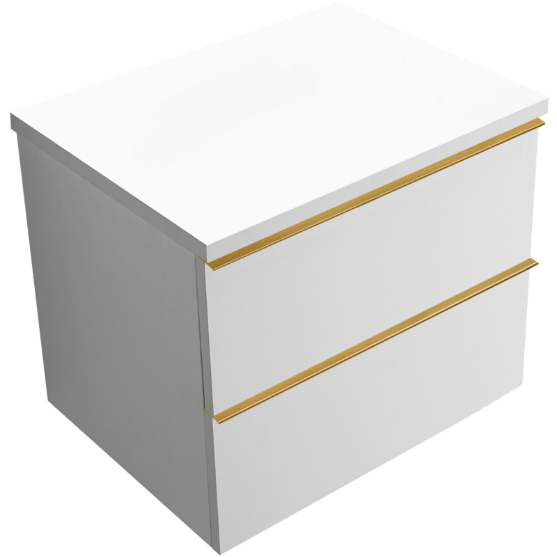 CERANO - Kúpeľňová skrinka pod umývadlo s úchytkou/doskou pod umývadlo Velora - 36 mm - biela matná, zlatá úchytka - 59x53x46 cm