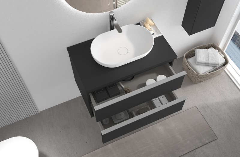 Naše kúpeľňové skrinky prichádzajú už v zmontovanom stave, čo vám ušetrí čas aj námahu pri ich inštalácii. Sú vyrobené z kvalitných materiálov a ponúkajú dostatok úložného priestoru pre všetky vaše potreby.