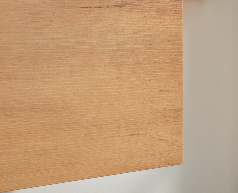 Kúpeľňové skrinky sú vyrobené z MDF lamina (stredne hustá drevovláknitá doska) s nalisovanou melamínovou fóliou, ktorá je odolná voči vlhkosti, poškriabaniu, UV žiareniu a bežným čistiacim prostriedkom. Povrch je hladký, tvrdý, homogénny a ľahko sa čistí. MDF dosky sa nekrútia ako masívne drevo. Pokiaľ dôjde k mechanickému narušeniu laminácie, samotné MDF jadro môže navlhnúť.