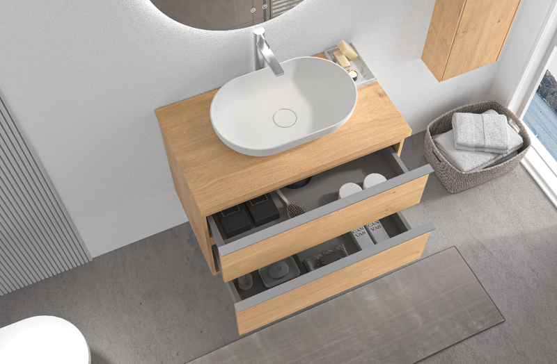 Vďaka úložnému priestoru je tento kúpeľňový nábytok veľmi praktickým pomocníkom do každej kúpeľne. Kombinácia inovatívneho a spoľahlivého riešenia, na ktorom si naša značka zakladá, dala vzniknúť kvalitnému a zároveň veľmi modernému kúpeľňovému nábytku.
