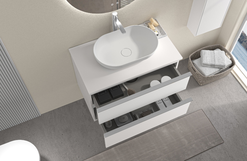 Naše kúpeľňové skrinky prichádzajú už v zmontovanom stave, čo vám ušetrí čas aj námahu pri ich inštalácii. Sú vyrobené z kvalitných materiálov a ponúkajú dostatok úložného priestoru pre všetky vaše potreby.