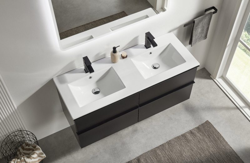 CERANO - Kúpeľňová skrinka pod umývadlo Carole - čierna matná - 119x48x45 cm