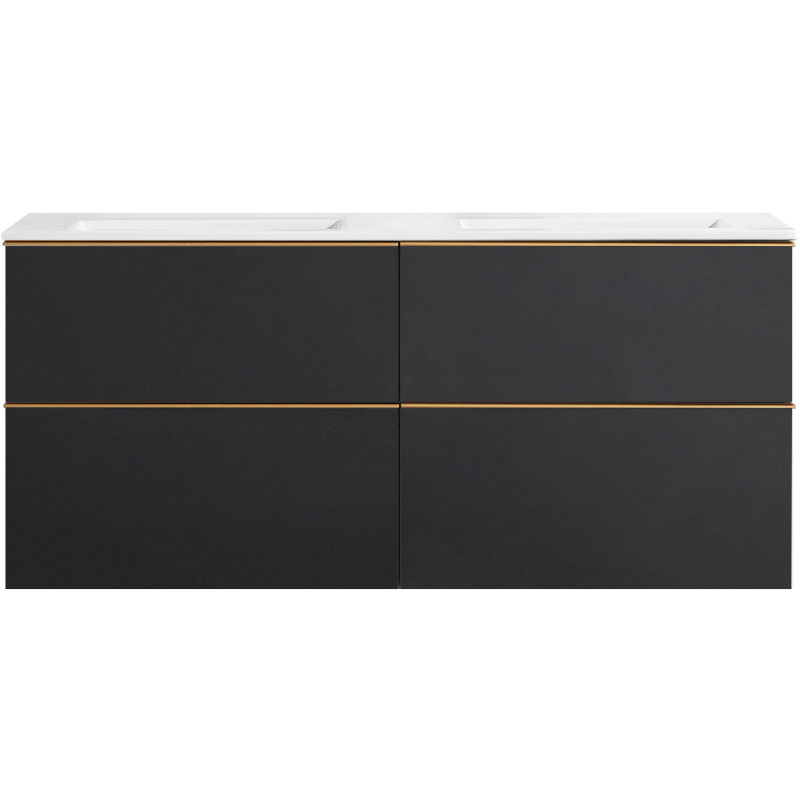 CERANO - Kúpeľňová skrinka pod umývadlo s úchytkou Velora - čierna matná, zlatá úchytka - 158x49,8x45,2 cm