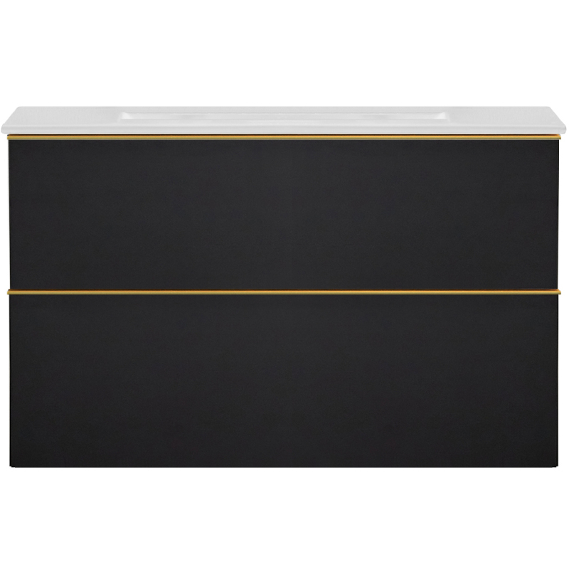 CERANO - Kúpeľňová skrinka pod umývadlo s úchytkou Velora - čierna matná, zlatá úchytka - 79x49,8x46 cm