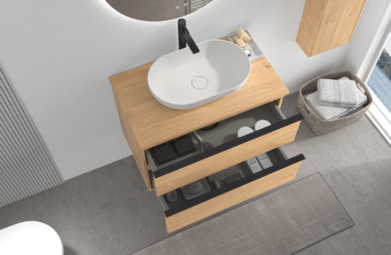 Naše kúpeľňové skrinky prichádzajú už v zmontovanom stave, čo vám ušetrí čas aj námahu pri ich inštalácii. Sú vyrobené z kvalitných materiálov a ponúkajú dostatok úložného priestoru pre všetky vaše potreby.