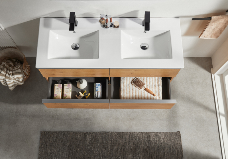 Naše kúpeľňové skrinky prichádzajú už v zmontovanom stave, čo vám ušetrí čas aj námahu pri ich inštalácii. Sú vyrobené z kvalitných materiálov a ponúkajú dostatok úložného priestoru pre všetky vaše potreby.