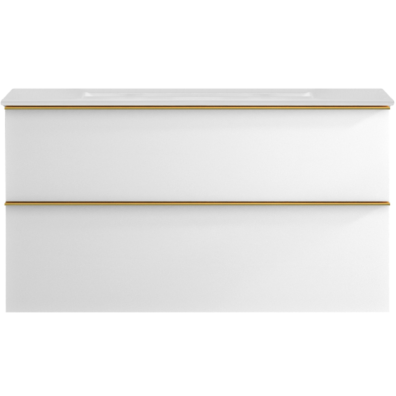 CERANO - Kúpeľňová skrinka pod umývadlo s úchytkou Velora + keramické umývadlo Todo - biela matná, zlatá úchytka - 99x49,8x46 cm