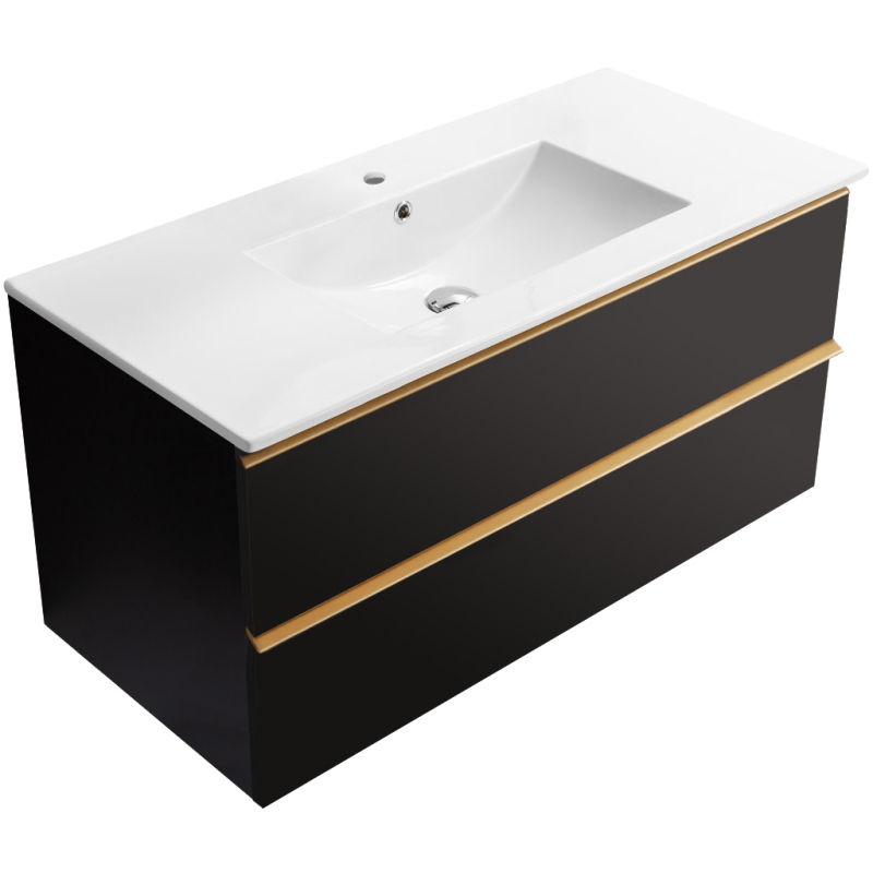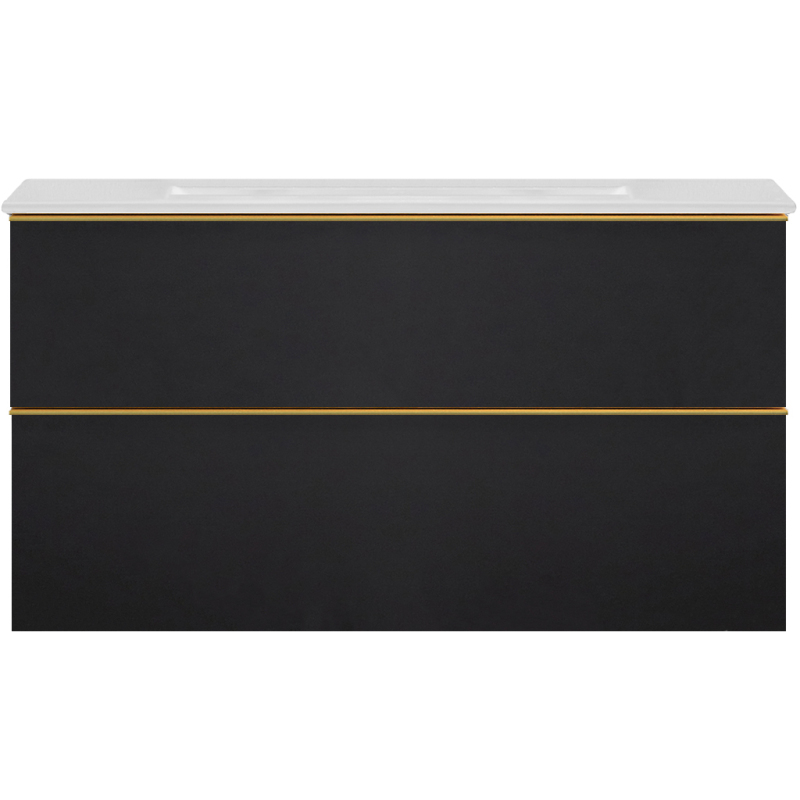 CERANO - Kúpeľňová skrinka pod umývadlo s úchytkou Velora + keramické umývadlo Todo - čierna matná, zlatá úchytka - 99x49,8x46 cm