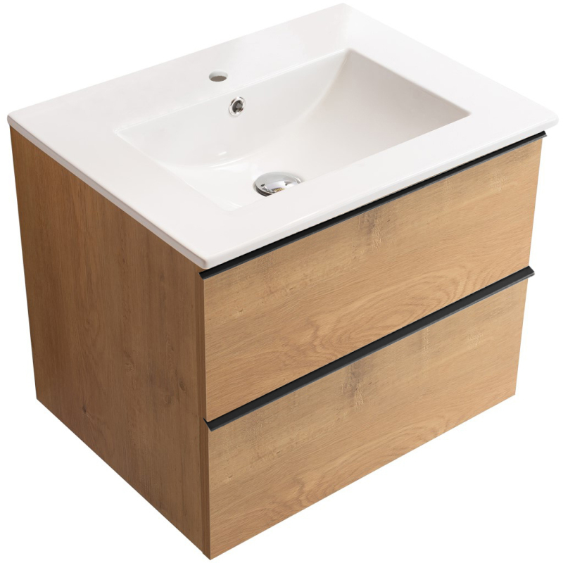 CERANO - Kúpeľňová skrinka pod umývadlo s úchytkou Velora + keramické umývadlo Todo - dub medový, čierna úchytka - 59x49,8x46 cm