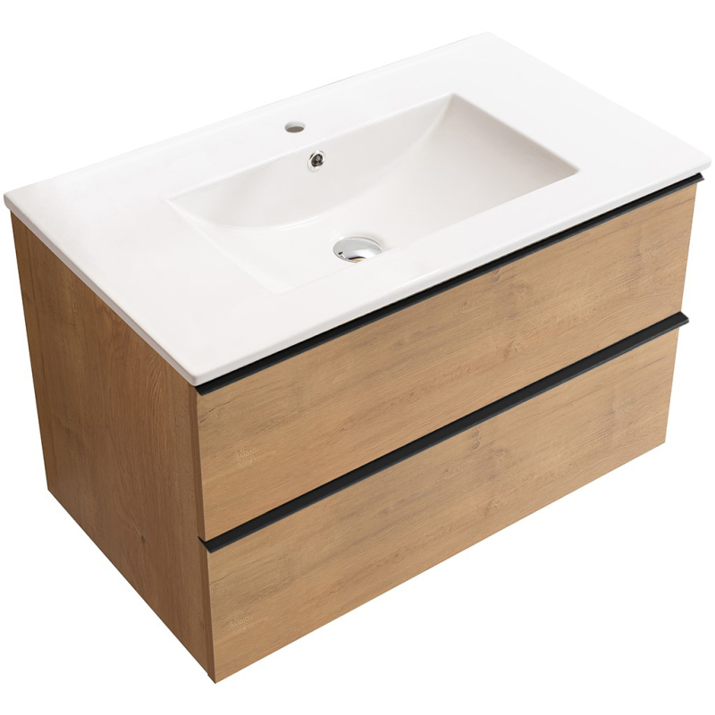 CERANO - Kúpeľňová skrinka pod umývadlo s úchytkou Velora + keramické umývadlo Todo - dub medový, čierna úchytka - 79x49,8x46 cm