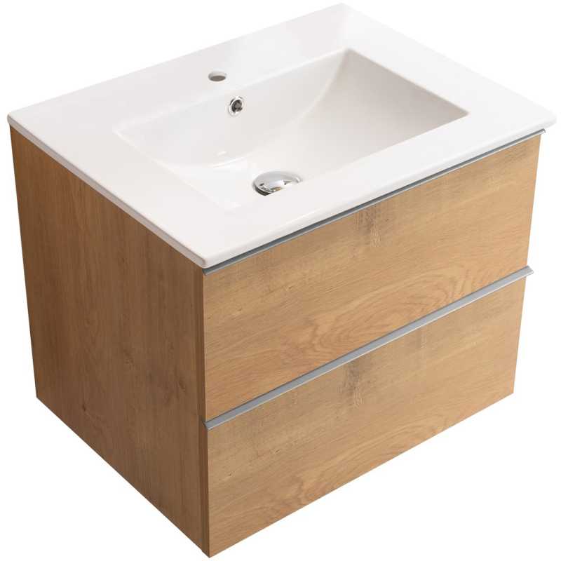 CERANO - Kúpeľňová skrinka pod umývadlo s úchytkou Velora + keramické umývadlo Todo - dub medový, chrómová úchytka - 59x49,8x46 cm