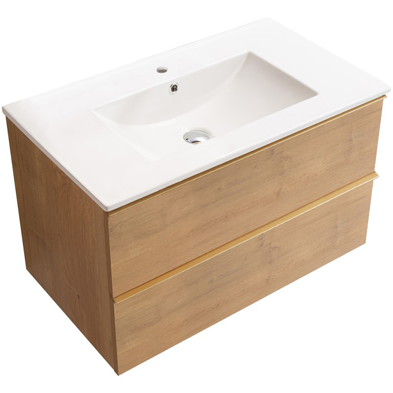 CERANO - Kúpeľňová skrinka pod umývadlo s úchytkou Velora + keramické umývadlo Todo - dub medový, zlatá úchytka - 79x49,8x46 cm