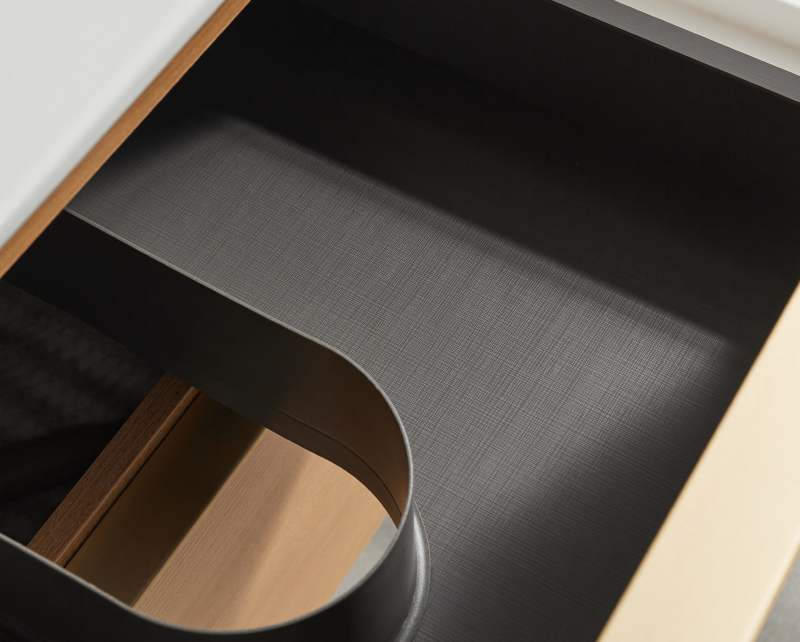 Funkcia tichého dovierania (Quiet Close) zaisťuje, že sa zásuvky zatvárajú hladko a bez hluku. Tento mechanizmus minimalizuje opotrebenie nábytku a prispieva k dlhodobej životnosti skrinky. Umožňuje tiché a pohodlné používanie, čo oceníte najmä v ranných a nočných hodinách.