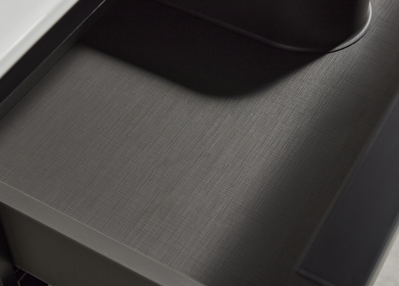 Kúpeľňové skrinky sú vyrobené z MDF lamina (stredne hustá drevovláknitá doska) s nalisovanou melamínovou fóliou, ktorá je odolná voči vlhkosti, poškriabaniu, UV žiareniu a bežným čistiacim prostriedkom. Povrch je hladký, tvrdý, homogénny a ľahko sa čistí. MDF dosky sa nekrútia ako masívne drevo. Pokiaľ dôjde k mechanickému narušeniu laminácie, samotné MDF jadro môže navlhnúť.