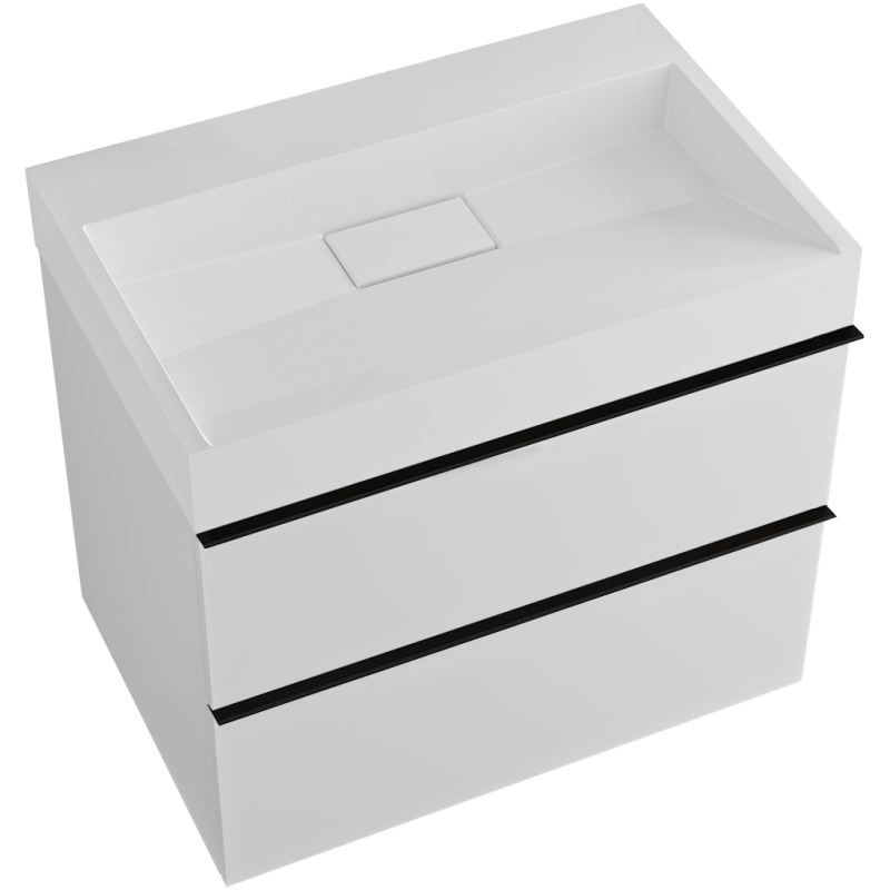 CERANO - Kúpeľňová skrinka Velora - biela matná - úchytka čierna + umývadlo z liateho mramoru Vita - biela matná - 70x53x46 cm