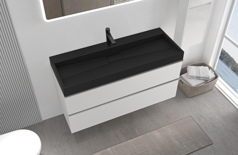 CERANO - Kúpeľňová skrinka Velora - biela matná - úchytka chróm + umývadlo s otvorom pre batériu z liateho mramoru Vita - čierna - 100x53x46 cm