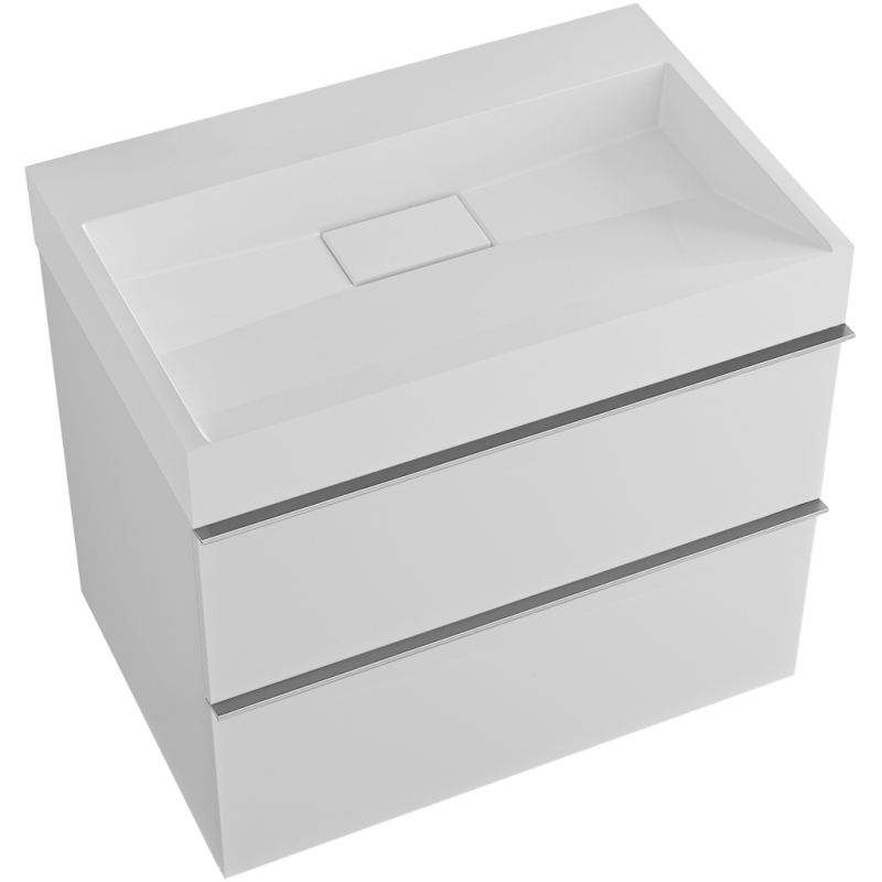 CERANO - Kúpeľňová skrinka Velora - biela matná - úchytka chróm + umývadlo z liateho mramoru Vita - biela lesklá - 70x53x46 cm