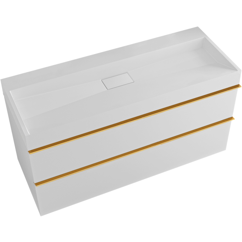 CERANO - Kúpeľňová skrinka Velora - biela matná - úchytka zlatá + umývadlo z liateho mramoru Vita - biela lesklá - 100x53x46 cm