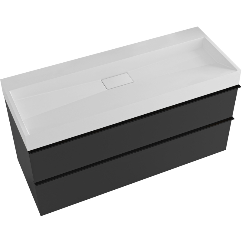 CERANO - Kúpeľňová skrinka Velora - čierna matná - úchytka čierna + umývadlo z liateho mramoru Vita - biela matná - 100x53x46 cm
