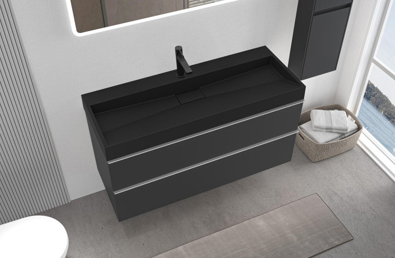 CERANO - Kúpeľňová skrinka pod umývadlo Carole - čierna matná - 99x48x45 cm